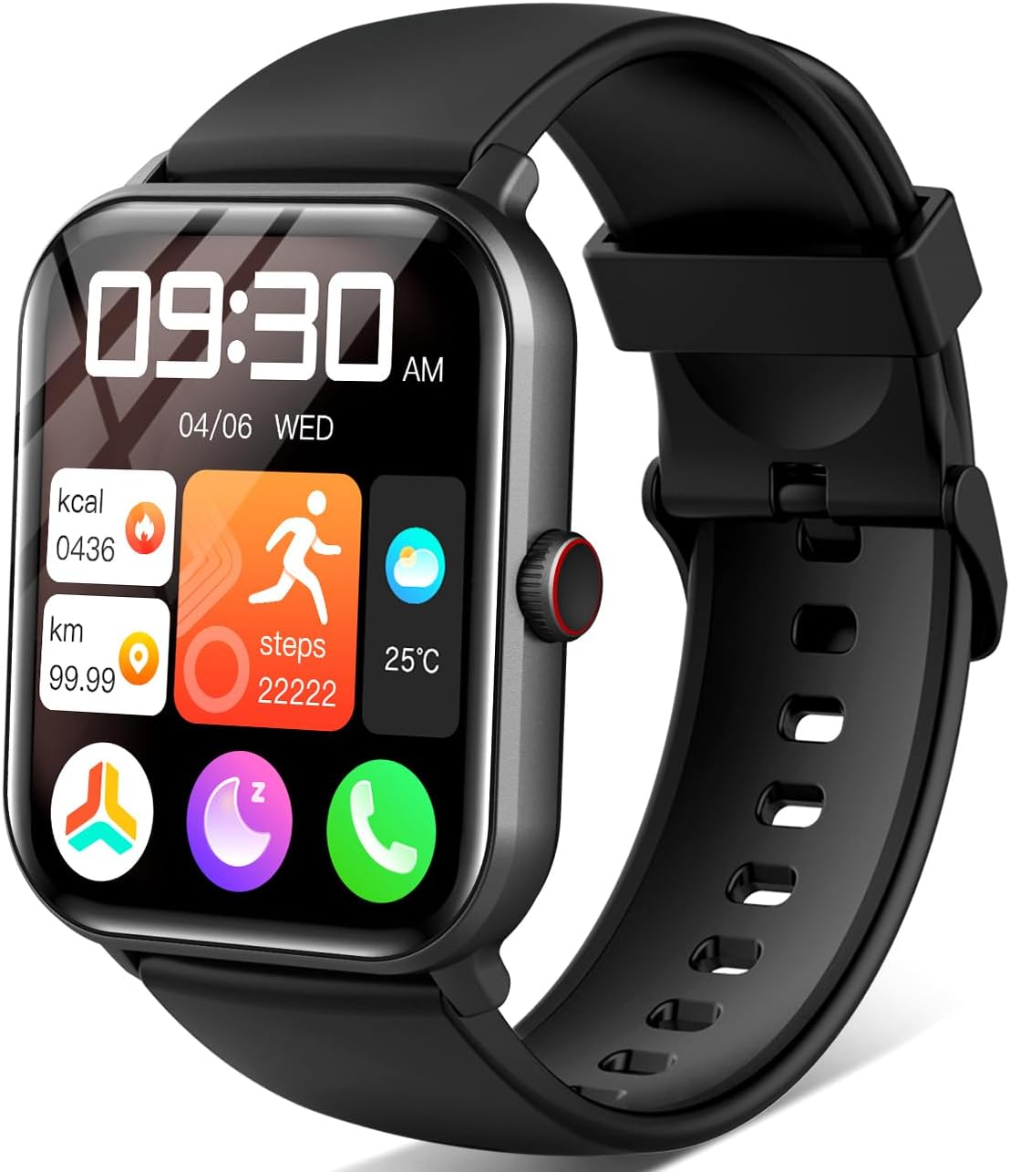 スマートウォッチ【2025年業界最新傑作】iPhone対応 アンドロイド対応 最新Bluetooth5.3 通話機能 音楽再生 1.9インチ大画面 活動量計 腕時計 100種類の運動モード スポーツウォッチ IP68防水 SMS/Twitter/Line通知 SOS機能 iPhone/アンドロイド対応 メンズ レディース プレゼントに最適(Black)